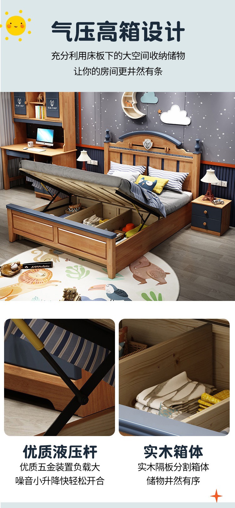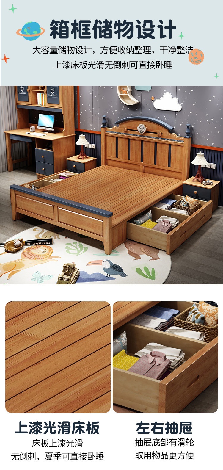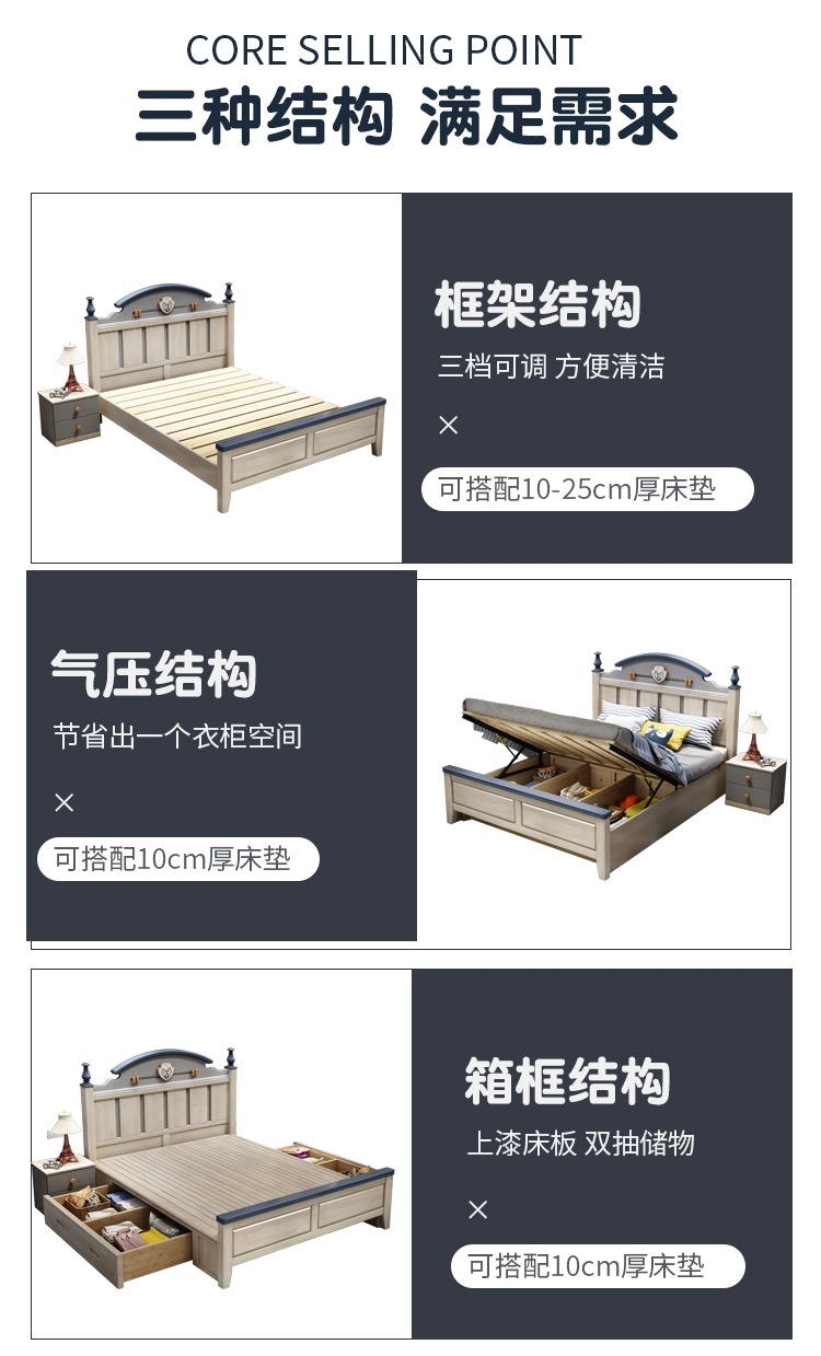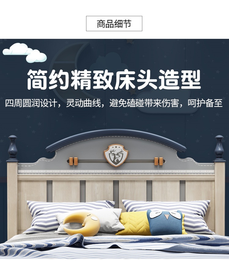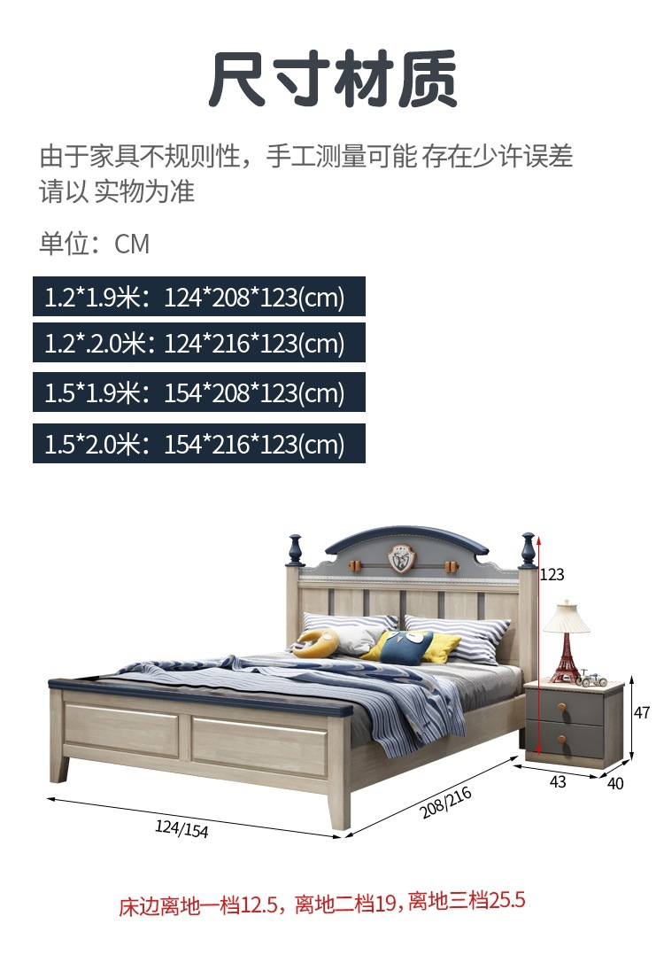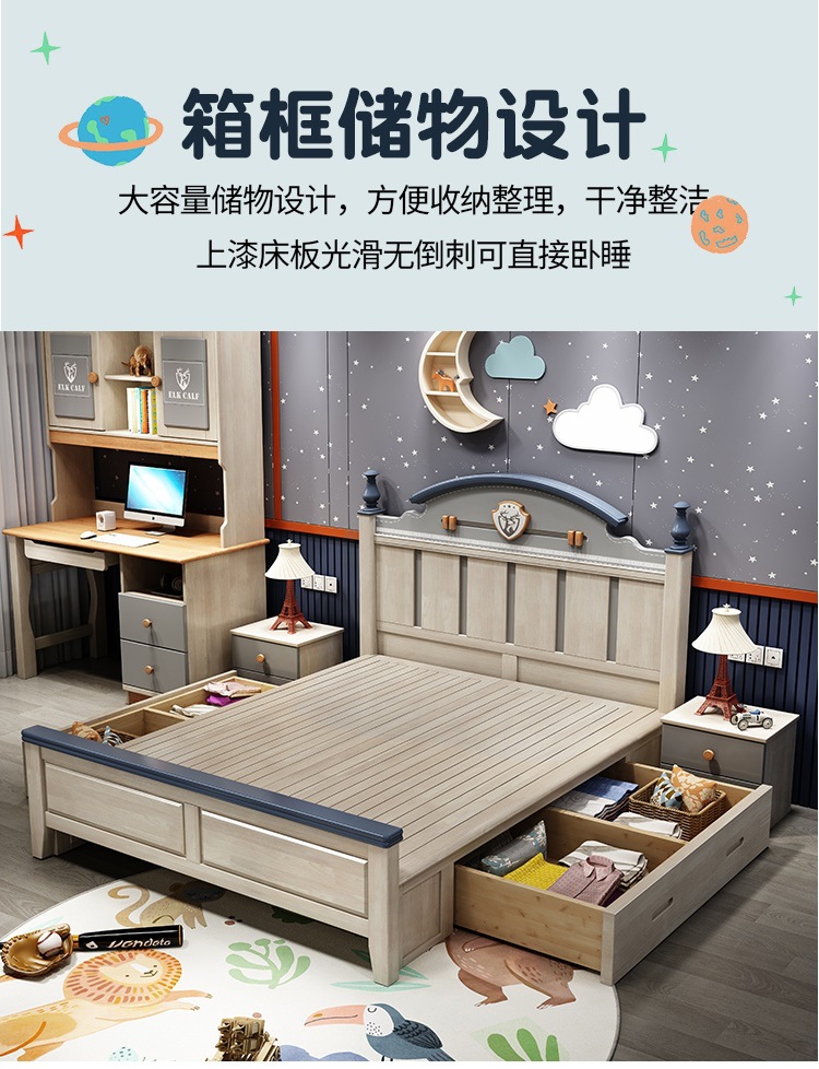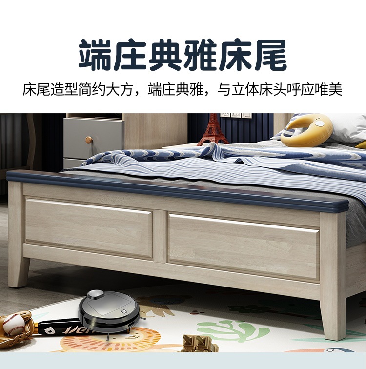 Solid Wood Children's Bed Simple American Teen Boy Blue And White 1.5M Storage Girl 1.2M Single Suite